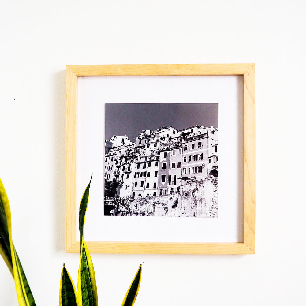 All frames are handcrafted with hard maple wood and finished with a natural wood wax. These sturdy, protective frames are built to showcase and protect your memories, pieces of art, or pressings.