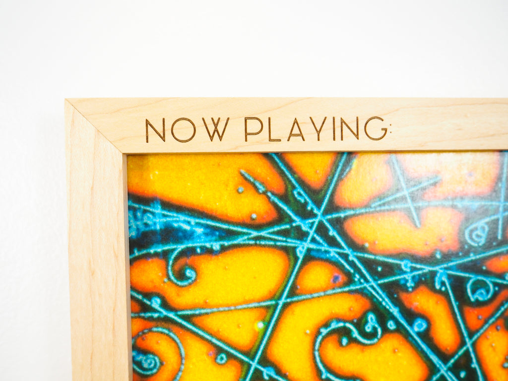 The laser engraved "Now Playing" can be customized to any phrase or name of your choice. We ask to limit the characters to under 25. However, if you have something larger in mind please message us and we can try our best to accommodate you. Please fill out your custom engraving in the "special instructions" box when checking out.