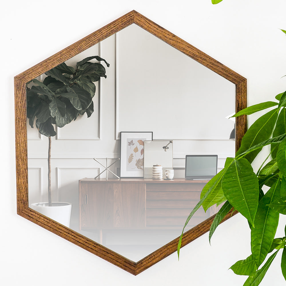 Dot & Rose CoHexagon Vanity Mirror- add a geometric and sleek touch to any room of your home. Perfect for vanities and matching bathroom mirrors.