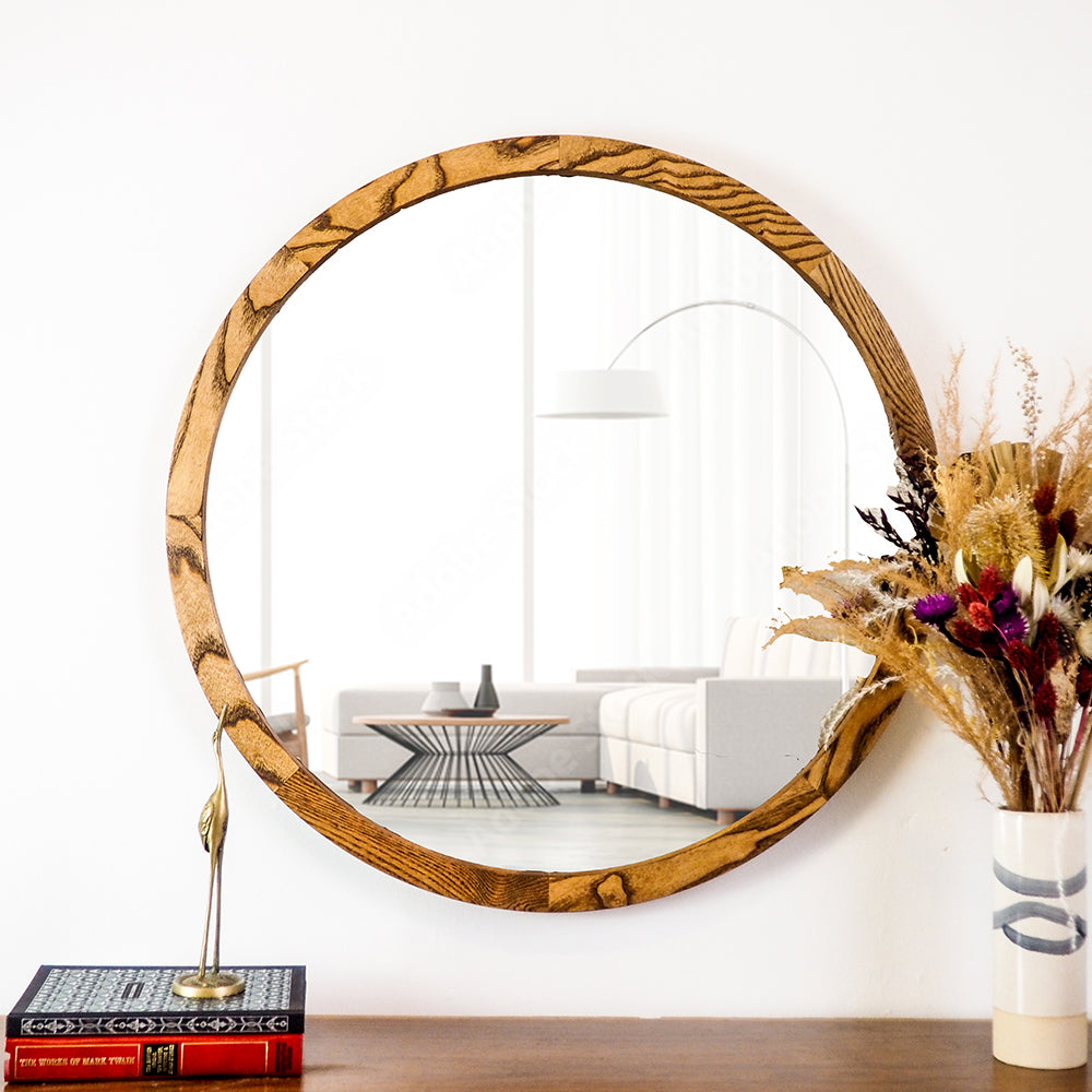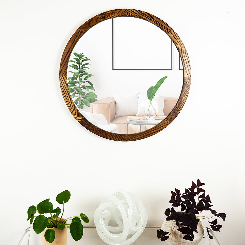 Our wooden frame gives the mirror a warm touch that can compliment modern and mid century aesthetics.
